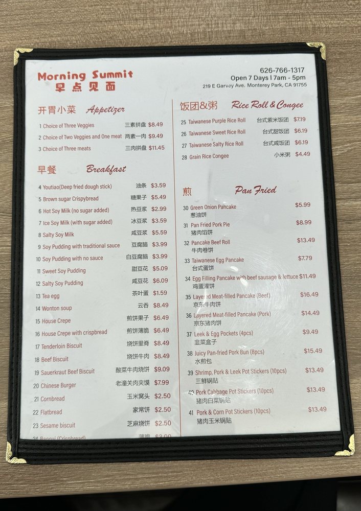 Welcome to Morning Summit, the perfect destination for breakfast and brunch enthusiasts in Monterey Park. This delightful eatery, located at 219 E Garvey Ave, offers a variety of delicious menu options, including many vegetarian dishes, ensuring there's something for everyone.